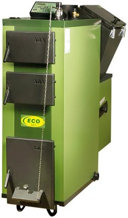 Sas ECO – stalowy kocioł automatyczny z zasobnikiem i podajnikiem tłokowym.