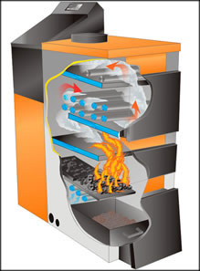 Taurus Gaur – stalowy kocioł automatyczny z zasobnikiem i podajnikiem tłokowym.